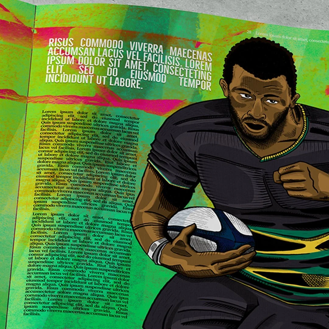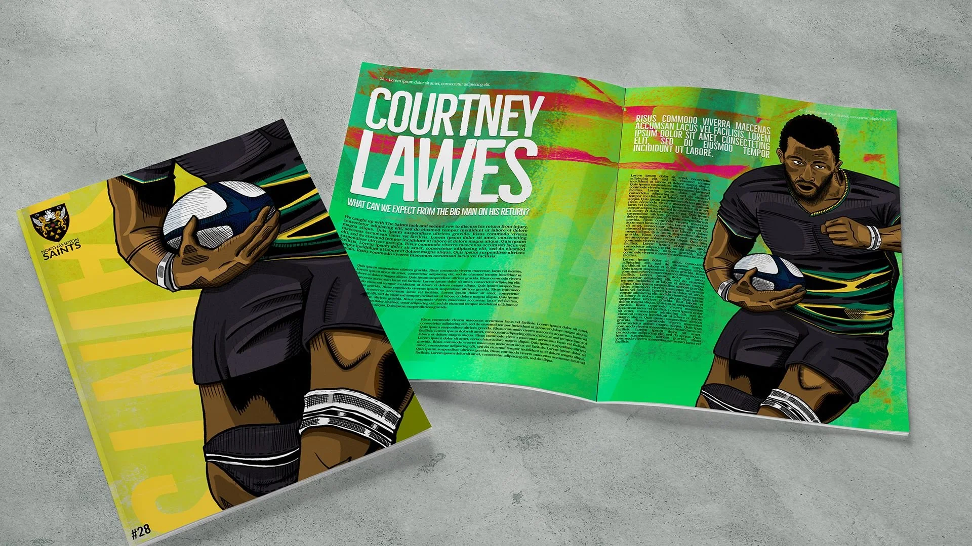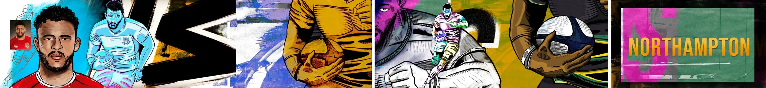 As part of my exploration of illustration/kinetic type/sports graphics. I've put two versions together in one clip here of Courtney Lawes, the second row of Northampton Saints, England and British and Irish Lions. I like to bring illustration into my projects where possible. One of the main reasons for me is that I think it stands out more. We're used to (bored, even) seeing the same generic stock photography and models dressed up as different roles across marketing output. Of the ways illustration can help, one is to make a brand stand apart from competitors who may rely on stock photography or generic design elements. There's an amount of personality and a different visual experience that comes from using illustration that is hard to convey with stock assets. I often chat about rep-purposing content to my clients. This illustration was intended for a motion piece, but I knew it could find use in printed material too. Like, a matchday programme... I’ll be adding to this series with stars old and new, men’s and women’s teams.